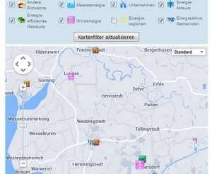 (CIS-intern) – In Sachen erneuerbare Energien ist Dithmarschen kein unbeschriebenes Blatt. Die digitale „Energiekarte Dithmarschen“ im Internet auf www.dithmarschen/klimaschutz.de hingegen weist noch viele weiße Flecken auf. Mit Hilfe von Privatpersonen, Unternehmen und Kommunen sollen diese weißen Flecke verschwinden. Die neue interaktive Karte soll Aufschluss darüber geben, wie und in welchen Gebieten in der Region der Ausbau von erneuerbaren Energien sowie energieeffizienten Gebäuden voranschreitet.