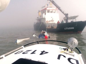 Die Seenotretter liefen sofort aus. Neben der BERNHARD GRUBEN waren auch die beiden von Freiwilligen gefahrenen Seenotrettungsboote ELLI HOFFMANN-RÖSER/Station Baltrum und CASSEN KNIGGE/Station Norddeich der DGzRS im Einsatz. Ein SAR-Hubschrauber der Deutschen Marine und der Rettungshubschrauber „Christoph 26“ aus Sanderbusch waren ebenfalls im Einsatz, konnten im dichten Nebel allerdings nicht eingreifen.